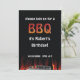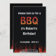 Uma ilustração gráfica de uma churrasqueira flamejante do artista/designer Charmaine Paulson em um convite para CHURRASCO. O convite tem modelos de texto para sua personalização. ©2012