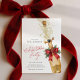 Levante um brinde à estação com este elegante convite de festas de Natal vermelho, com uma garrafa de champanhe tocada com um arco vermelho brilhante, bagas de inverno e samambaias exuberantes. Perfeito para encontros festivos, festas de escritório e comemorações de feriado. Consulte nossa coleção para obter mais designs de festas de feriado correspondentes.