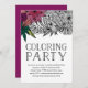Hospedando uma noite de coloração adulta? Convide amigos a compartilhar seu lado criativo com esses belos convites de festas coloridos, com uma borda de flores tropicais exuberantes em preto e branco, parcialmente coloridos com matizes brilhantes e vibrantes. Uma escolha perfeita para um tema de festa único!
