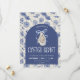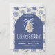 Este convite apresenta um retrato aquoso de uma ostra decorada com um arco de fita azul.
