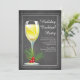 convite de festas de cocktail de férias moderno de 2014, com um copo de champanhe de vinho, enfeitado com um fundo de quadro preto de na moda com uma estrutura clássica. Sacudir nosso convite de festas de Natal para ver uma correspondência de volta para um toque especial extra. Disponível em nosso compro em uma grande variedade de opções de cores populares e tradicionais