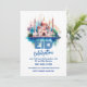 Um convite de janto Eid com uma mesquita de aquarela. O cartão é fácil de personalizar com seu texto, fonte, cor da fonte, opções de forma de papel e opções de tipos de papel. A paleta colorida do design parece estonteante na frente, enquanto o roxo cintilamente escuro contrastando na parte de trás faz com que este convite de festas Eid seja realmente único.