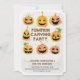 Jack-O'Lanterns grita deste convite de festas divertido. O trabalho de arte com cor d'água enquadra o texto. É ousado e moderno em Cores de outono para a sua grande festa de esculpir abóbora.