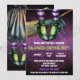 © Socialite Design Inc. & LICENSORS. Um design convite de festas de fantasia de bruxa engraçada e divertida pronto para você personalizar com seu próprio texto. A design incorpora pernas de bruxa e vassoura voadora na frente. O dorso tem uma abóbora esculpida, pernas de bruxa com saia e caldeirão fervente.
