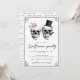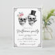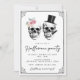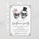 Vintage tema vitoriano convite de festas de fantasia de Halloween mostrando casal crânio com flores, chapéu e charuto.