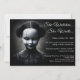 Este assombroso convite de Halloween apresenta um design de boneca de porcelana assustador, perfeito para uma festa de fantasia adulta com vibrações inquietantes e inquietantes. Personalize com seus detalhes de eventos para uma noite de arrepios, coquetéis e diversão assustadora.