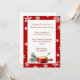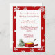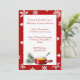 Convite festivo para festas de festas de festas feitas em fundo vermelho, com flocos de neve brancos. Uma área de texto branca é decorada, na parte inferior, com gráficos de uma ramificação de pino e um pote de fondue. O texto em vermelho é totalmente personalizável para atender às necessidades do seu partido. Festa de Excelente para uma noite fria.