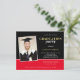 Um alternativo de 4,5 pol x 5,6 pol com preço inferior. Disponível em um STOCK DE CARTÃO SEMI-GLOSS 110 lb, que é a opção padrão (mais espesso para convites), OU um STOCK de PAPEL THINNER FINISH 80 lb FINISH (ideal para gabinetes). Os envelopes são um extra opcional e são ligeiramente maiores que o tamanho da placa. . Um design moderno com sua foto de formando e seu texto de na moda. Totalmente personalizável, isso tem letras brancas e douradas em um fundo preto com uma borda vermelha correndo ao longo da borda inferior. Troque facilmente a sua própria foto de orientação para retratos, e o texto também pode ser facilmente personalizado. Se desejar, clique na opção personalizar mais para alterar os estilos de fonte, as cores e também as cores de fundo.