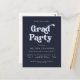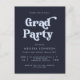Um convite para na moda festa de formatura com "Partido Formando" em fonte de estilo retroativo em azul claro sobre um fundo azul escuro. Personalize com seus detalhes.