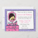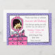 Nosso convite para a foto de aniversário da Glamor Girl é perfeito para uma jovem especialmente glamourosa no seu aniversário. Com tudo que uma menina precisa se vestir: um cômodo de polca cor-de-rosa, espelho rosa, esmalte, maquiagem, batom, perfume, spray de cabelo, roletes e colar de pérolas. Fundo de bolinhas roxo. Personalize-o com sua própria foto e texto personalizado. PinkInkArt original!