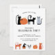 Gatos bonitos e assustadores, lanternas de abóbora e fantasmas. Um Halloween divertido ou convite de aniversário de queda, com uma abóbora de gato correspondente nas costas. Personalize com seus próprios detalhes de celebração. Arte original de Nic Squirrell.