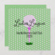 Cores verdes e cor-de-rosa dominam este convite para o Partido do Golfe da Liga das Mulheres. Adicione seu campo de golfe e informações sobre a festa. Escolha a fonte e o tamanho do texto.