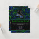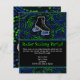festa de aniversário de patinação divertida e festiva, o convite de festas skate apresenta skate de roletes pretos com círculos verdes e azuis em neon e fundo cintilante. Excelente para uma festa de patinação, equipe ou aniversário de qualquer idade, rapazes ou raparigas. Adicione o nome do convidado de honra, os detalhes do evento e o título da festa na frente, e Personalize todo o texto do seu partido! Preto e azul com ênfase verde brilhante design.