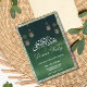 Um convite do janto Eid com um simples histórico de celebração de eid verde. O cartão de luxo é fácil de personalizar com sua redação, opções de forma de papel e opções de tipos de papel. A placa idul Adha também contém a palavra caligráfica árabe Eid al Adha e a paleta verde do design parece impressionante na frente, enquanto o efeito de brilho contrastando atrás faz com que este convite de festas elegante do Eid seja realmente único.