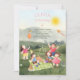 O convite de aniversário desta criança engraçada e fofa apresenta uma cena piquenique alegre cercada pela natureza, ar fresco e céus ensolarados. Vemos crianças brincando, uma pipa voando, um balão, um bolo, uma guitarra, um cesto de piquenique e um passarinho sentados em um balão. Este cartão fofo certamente agradará a todos que o recebem. Personalizar para torná-lo seu próprio:) Este item faz parte de um conjunto de coleções com o mesmo tema para meninos e meninas.