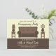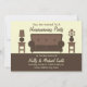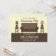Um convite de festas moderno de aquecimento doméstico com um esquema de cores castanhas. Sofá fica no centro entre mesas extremas com um vaso de flores e uma lâmpada. Personalize o texto em cima e em baixo com detalhes de sua ocasião.