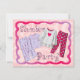 Festa de pijama divertida e festiva ou convite de aniversário de madeira apresenta corações cor-de-rosa pj set e estrelas roxas pijamas com fundo brilhante rosa e branco. Excelente para uma festa geral do pijama, festa do pijama ou sono noturno para qualquer garota etária. Personalize todo o texto do seu partido! Rosa quente, rosa claro e design púrpura lilás.