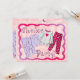 Convite de festas de madeira, cor-de-rosa e púrpur
