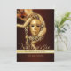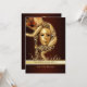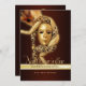Modelo de convite de festas de Ano Novo personalizável com tema elegante de bola de mascarada festiva com máscaras de Renascença masculinas e femininas de ouro no fundo da marrom-escura (a cor pode ser alterada). Personalize-o com o seu próprio texto em ambos os lados ou personalize-o ainda mais se quiser ajustar o layout, o texto e as cores ou escolher um tamanho de convite diferente.