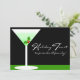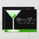Agradeça aos amigos e à família enviando estes convites bonito. Uma boa bebida mista, misturar, comer, dançar e rir é o que uma festa é. Um copo de vinho branco com um dentro de bebida minúscula com bagas doces parece delicioso. O fundo preto e verde dá a sensação de um evento noturno. Todo o texto na frente e no verso deste convite pode ser personalizado.