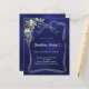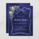 Para uma festa de Natal com familiares e amigos. Decorado com um arco branco simples desenhado à mão, verde e um pinho. Personalize e adicione os detalhes. Festa de Natal de coração. Um fundo azul marinho, incolor. 1 folha = 1 convite impresso de borda a borda.