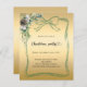 Para uma festa de Natal com familiares e amigos. Decorado com um arco verde simples desenhado à mão, verde e um pinho. Personalize e adicione os detalhes. Festa de Natal de coração. Fundo de gradiente de ouro falso. 1 folha = 1 convite impresso de borda a borda.