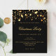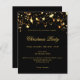 Um convite para um negócio, Festa de Natal da empresa. Fundo preto clássico. Decorado com estrelas ouros. Personalize e adicione os detalhes. 1 folha = 1 convite impresso de borda a borda.