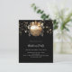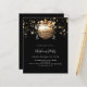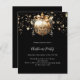 Um convite para uma festa de Natal. Um fundo negro. Decorado com uma grande safra dourada que parece bálsamo e estrelas ouros. Personalize e adicione os detalhes. Texto branco. 1 folha = 1 convite impresso de borda a borda.