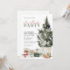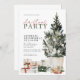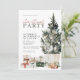 Convite de festas de Natal em aquarela com árvore de Natal e presentes. Personalize seus convites de Natal com os detalhes de sua festa.