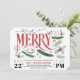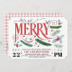 Apresentando fontes brancas e ramificações de pinheiros com cor d'água, bagas e holly em tons mais suaves de vermelho profundo, pínus empoeirado e blues leves, este convite para festas de Natal ou feriado tem uma vibração ligeiramente retrorreflectora. A parte traseira apresenta uma pequena impressão de xadrez com destaque para o holly em vermelho profundo. Coordena-se com a nossa coleção de feriados de Feliz.