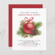 Convide convidados para o seu evento com este convite de festas de Natal personalizável. Ele apresenta um Enfeites de natal vermelho-aquarela com agulhas de pinho e winterberry. Personalize este convite de poinsettia adicionando os detalhes do seu evento. Este clássico convite de festas de Natal está disponível em outros estoques de cartão. Itens correspondentes estão disponíveis.