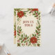 Celebrar os feriados com esta elegante Convite de festas de Natal de dois lados. Apresentando um fundo de pergaminho creme adornado com poinsetos vermelhos festivos, holly, evergreen sprigs e sotaques de ouro, a frente destaca seus detalhes de evento enquanto o dorso decorativo correspondente completa o design. Perfeito para festas de Natal, reuniões sazonais e festas de férias de inverno.