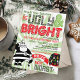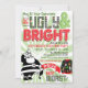 Personalize este Convite de festas de Natal Vermelho e engraçado, verde e branco listrado Ugly Sweater, com um lindo e desgastado Papai Noel preto e branco, luzes marqueadas e tipografia de suéter que diz, "Que Todos Seus Suéteres Sejam FANTÊS"! Personalize facilmente a redação para torná-la sua pessoa... quando a Design carinhosamente criada pela Fig e a Lily Studios