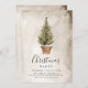 Convite de festas de Natal russo desenhado com uma árvore de Natal de aquarela. Design do Partido Cava