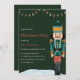 Celebre a temporada em estilo com este Convite de festas de Natal tradicional do Nutcracker. Apresentando um soldado festivo preguiçoso em um rico fundo verde, luzes de férias piscando, e elegante tipografia de Natal, este convite dá o tom perfeito para uma reunião de feriados quente e alegre. Personalize com seus próprios detalhes para festas familiares, comemorações de escritórios ou eventos festivos de Natal.