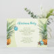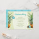 Modelo de convite de festas de Natal de abacaxi. Cor azul aqua tropical e verde pálido com texto personalizado no centro. Use para festas temáticas em casa ou no escritório.