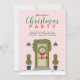 FESTA DE Natal | Na moda, porta da frente ilustrada e caminhada, decorada para o Natal. Arcos vermelhos, verde, coroa, e até mesmo a sua primeira porta, tudo num fundo rosa doce. Tão adorável.
