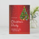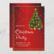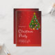 Um convite de festas de Natal vermelho. A design tem uma árvore de Natal e é uma decoração para celebração. Há uma culpa no fundo vermelho. A festa de Natal é escrita com tipografia moderna. personalize seus detalhes facilmente.