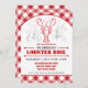 Bolhas de lagosta/convite de assar com um padrão de gingham, lagosta, moluscos, bolhas e algas. Fácil de personalizar com seu próprio texto. Ilustração Original por pj_design. Por favor, procure na minha loja mais assim.