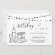 Convite de festas de piquenique de aniversário adulto - trabalho de arte de piquenique de vinho desenhado à mão num pano de fundo maravilhosamente simples.