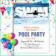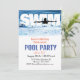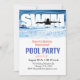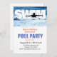 Procurando um convite de aniversário único e divertido? Não olhe mais! Este convite é para uma festa de piscina adulta. Ele apresenta um tema simples de água com um design de chamas. A palavra "NATAÇÃO" apresenta um nadador embutido dentro dela em tons de azul.