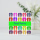 convite de festas de Piscina de Verão excelente, feito em forma quadrada. Gráficos divertidos de chinelos coloridos cobrir a frente do convite, com listras verdes brilhantes, no meio, com texto azul lendo Partido da Piscina. O verso do convite tem textos azuis e verdes e duas linhas dos chinelos coloridos, no fundo. Personalize todo o texto para se adequar ao seu evento precisa de excelente para festas de piscina ou praia.