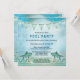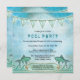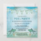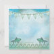 convite de festas com ondas e peixes em um fundo azul pintado com bunting. Este convite funciona bem tanto para um partido adulto como para famílias e crianças. A imagem superior frontal pode ser excluída para remover o rótulo se você não precisar dele.