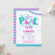 Faça um salto este verão com este convite de festas piscina moderno e colorido! Perfeito para uma cesta de aniversário para meninas, este vibrante design apresenta cores tropicais em azul, rosa e roxo com um falso efeito brilhante que adiciona o toque perfeito de brilho. Bolas de praia lúdicas, faixa festiva de bunting, e gráficos de abertura de água fazem este convite ideal para qualquer festa de piscina de verão para crianças, quer estejam comemorando no quintal, numa piscina comunitária, ou num resort tropical.