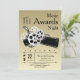 Este convite para Prêmios de filmes é ideal para um evento ou arte e glamour. Este convite moderno tem uma sensação vintage. Apresenta uma ilustração com um filme, filme e estrelas num fundo de gradiente flexível.