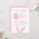 Um doce design perfeito para uma festa de aniversário primavera! Projetado para um primeiro aniversario, personalize o texto editável. Possui uma silhueta coalhada, ovo de páscoa, cores de pânster e uma corajosa. Rosa é a cor principal e tem bolinhas.