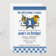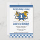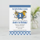 Celebre o primeiro aniversário do bebê com o nosso primeiro aniversario de design de cowboy com uma estrela do xerife número UM, um chapéu de cowboy e um cavalo de brinquedo com uma bandana. Texto personalizável. Perfeito para festas de aniversário de temas de cowboy e manutenção de aniversário. PinkInkArt original!