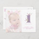 Convite de aniversário de Foto Infantil. Rosa e Roxo. Garota. primeiro aniversario. Cartão Postal.