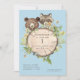 Convite de aniversário De Animais Da Floresta Bonita. Tons Neutrais. Azul e creme. Raccoon, Urso.