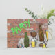 Junte seus amigos por algumas cervejas com este convite de festas único. Uma amostragem de diferentes toalhas em uma variedade de óculos e garrafas coloridas sentam-se sobre uma mesa entre um confete colorido na frente de uma parede de tijolos na imagem de aquarela na frente da placa. "Festa" na parede em neon verde adiciona cor festiva. O texto personalizável no verso pode ser facilmente alterado de acordo com suas próprias necessidades. Da minha imagem original criada digitalmente.